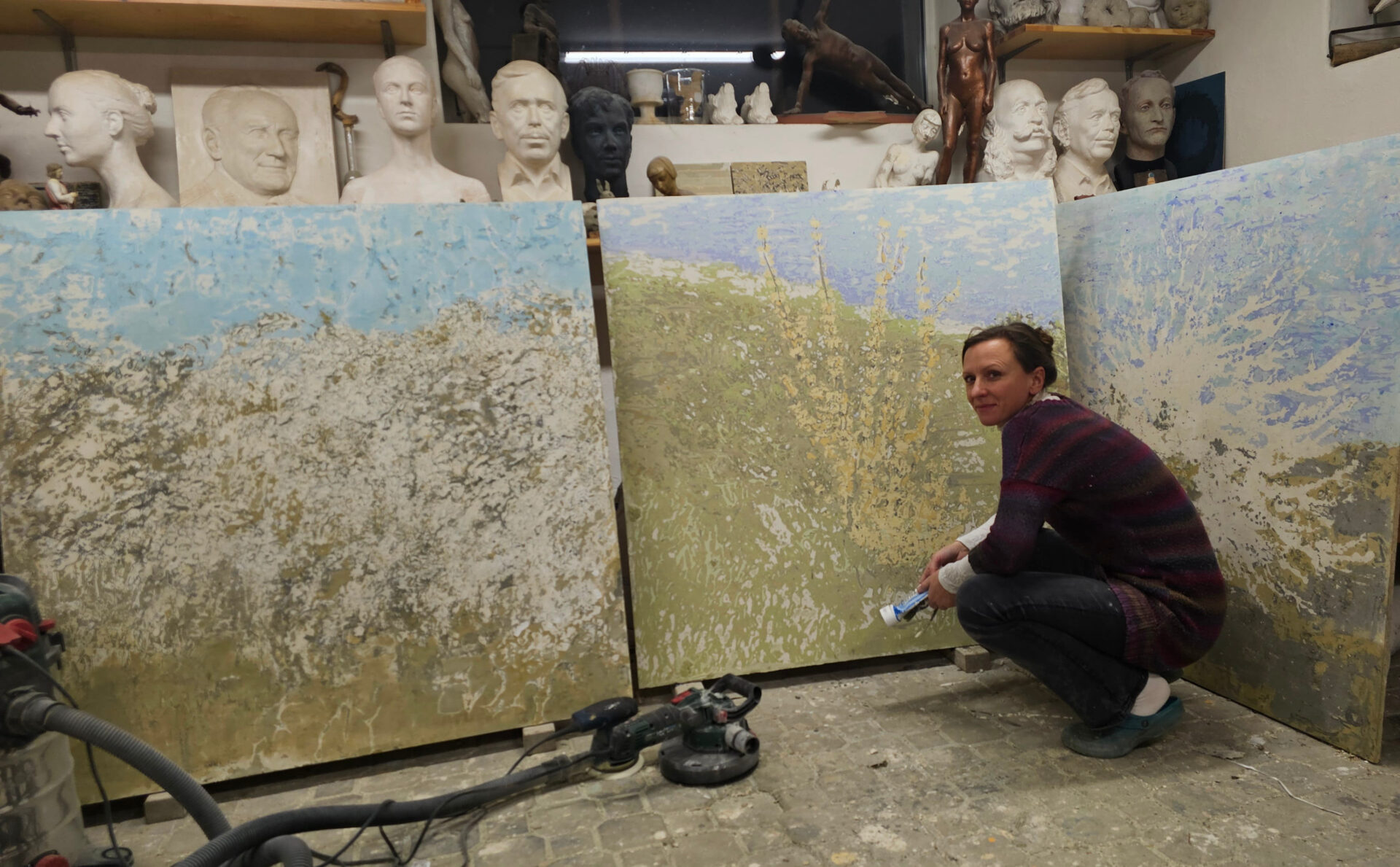 Tvorba tiskové matrice zde není chápána jako kresba, nýbrž jako sochařský akt. Vše začíná fyzickou cestou rydla materiálem, která vyžaduje tlak, vytrvalost a neustálé překonávání odporu. Sochařský princip však nekončí u samotné matrice. Také proces tisku lze chápat jako další, neméně podstatnou fázi sochařské práce. Autorka při tisku vrství barvy, někdy je částečně znovu odkrývá a nechává je vzájemně se prostupovat. Na papíře tak vzniká jemný reliéf – subtilní, avšak hmatatelný.