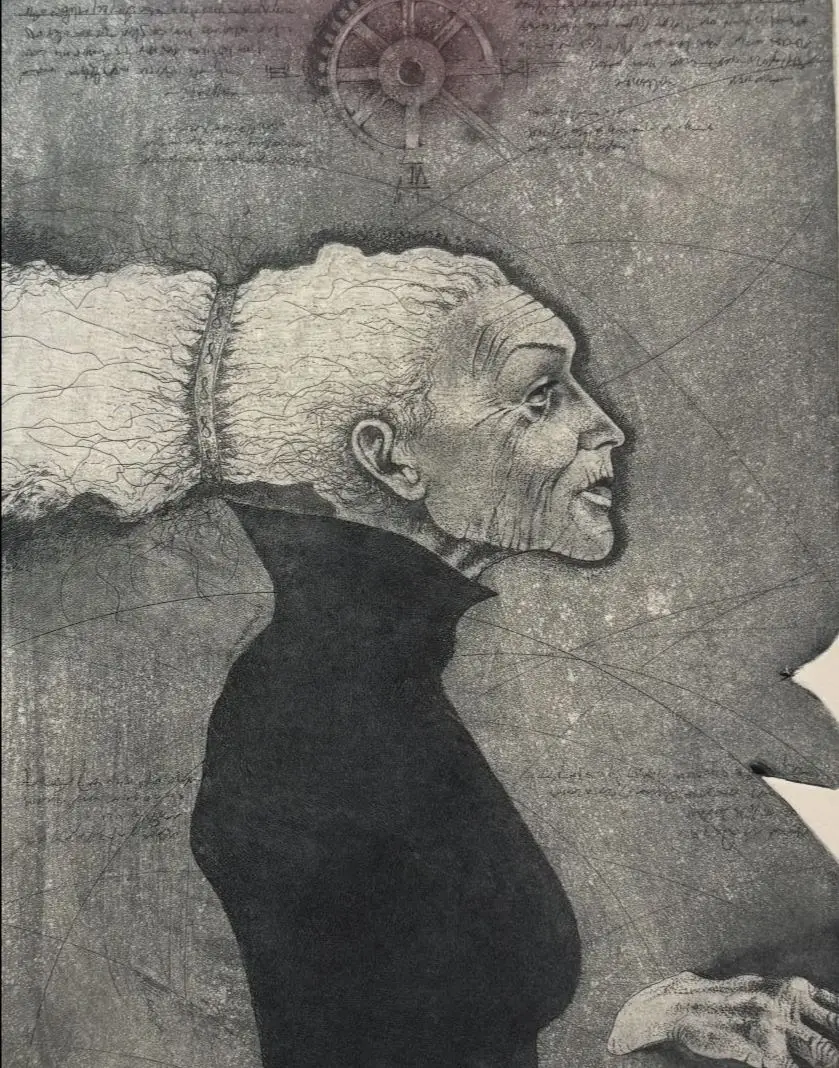 Název této výstavy „U konce s dechem“, může na první poslech znít osudově, možná až pesimisticky. Avšak v kontextu Novákova díla má tento obrat zcela jiný význam. Není to příběh o vyčerpání. Je to metafora pro okamžik absolutního soustředění, kdy grafik rydlem „krájí“ do měděné desky a doslova zadrží dech, aby neudělal chybu. Je to stav hudebníka, který do posledního výdechu drží dlouhý tón, i chvíle úžasu, kdy stojíme před něčím tak krásným, až nám „dojde dech“.